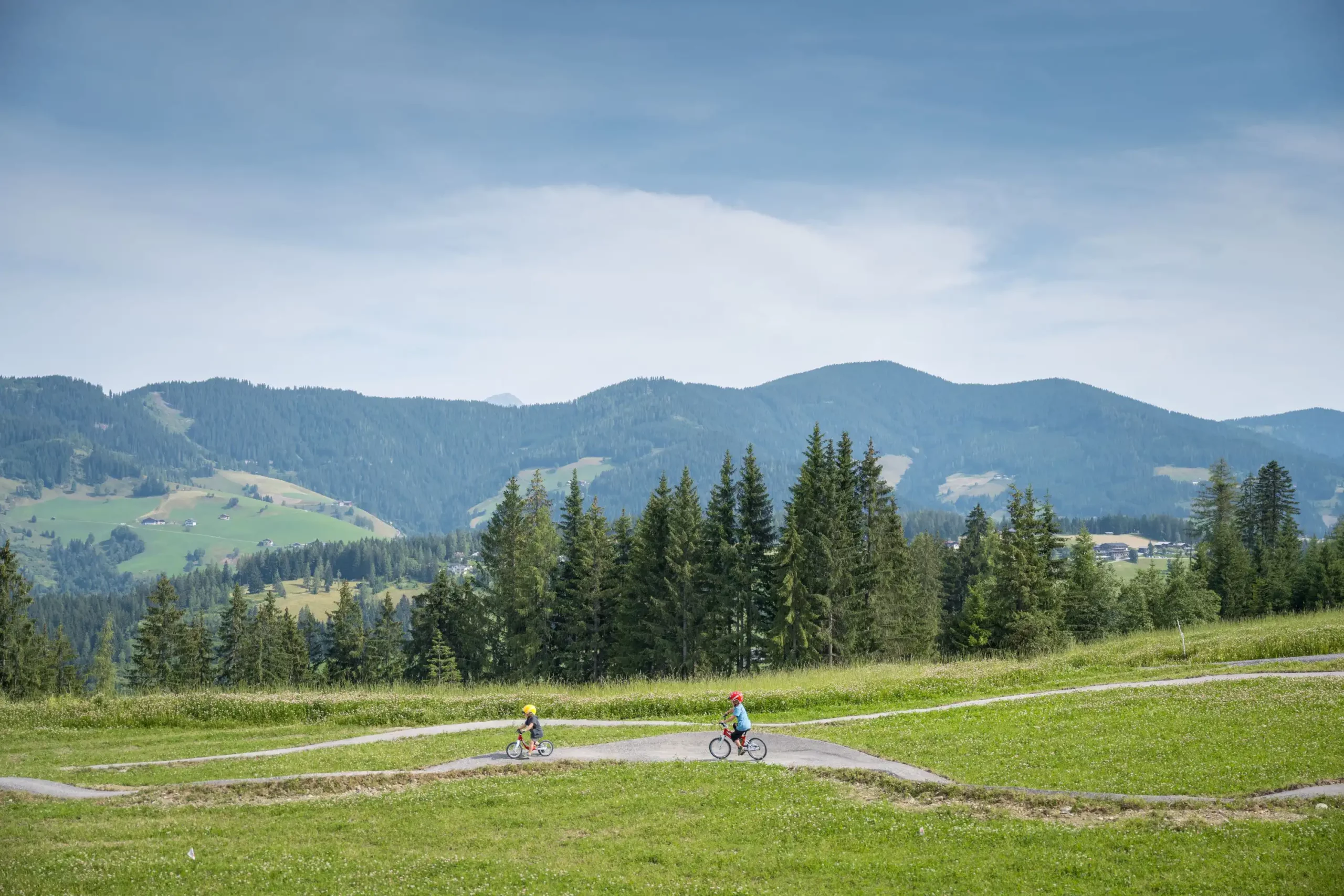 The new woom bike area in Snow Space Salzburg offers an exciting experience for young mountain bikers directly at the middle station of the Flying Mozart cable car in Wagrain. Families and children will find trails, obstacles and drops suitable for children on an area of 5,900 m². The trails are suitable for all skill levels, from beginners to more courageous riders.